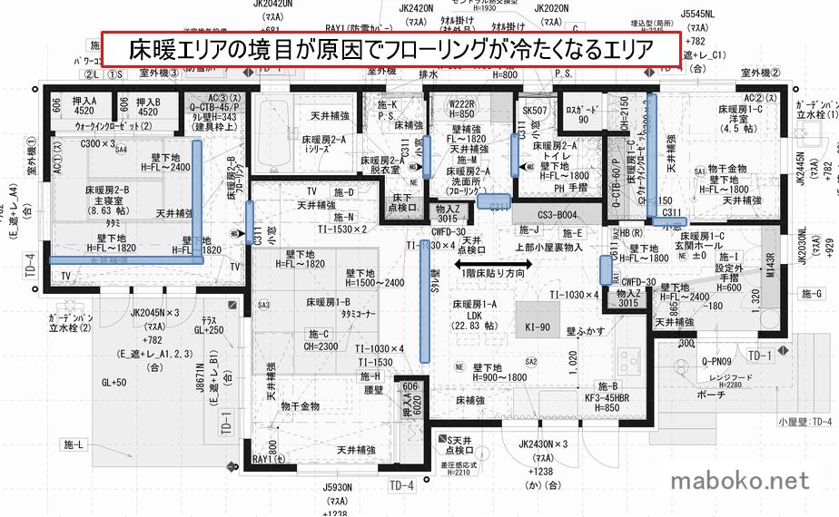 私が指摘した床暖エリアの境目の冷たさというのは絶対に避けることが出来ません。