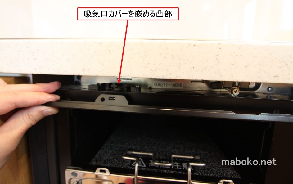 吸気口カバーはこちらの凸部をハメ込む場所がありますので奥までしっかりと差し込みましょう。
