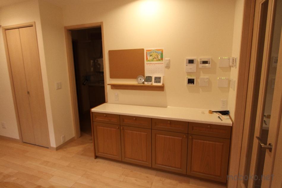 そして我が家の場合には郵便物などを処理するにあたりカップボードの天板を使って簡易的な書物が出来るスペースがあるというのが嬉しいです。
